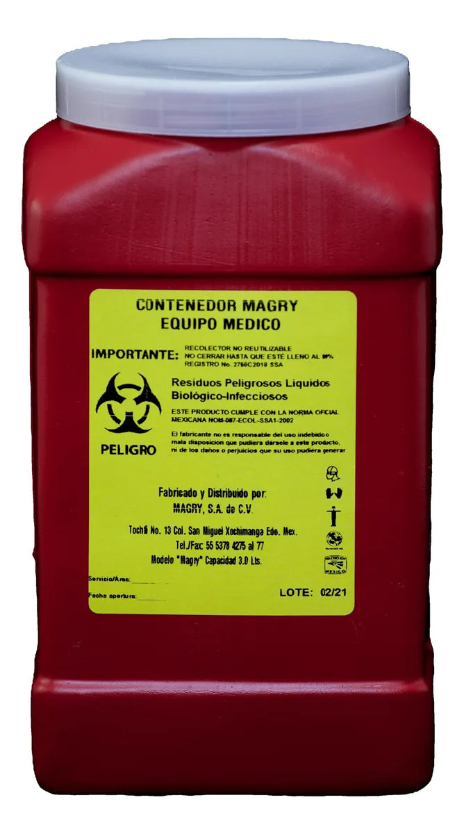 El Contenedor de Residuos RPVI está diseñado especialmente para la correcta disposición de productos punzocortantes. Su estructura segura y resistente garantiza la protección del personal y del medio ambiente al evitar accidentes y contaminación. Ideal para clínicas y laboratorios que requieren un manejo responsable de material peligroso, este contenedor facilita el almacenamiento temporal y la eliminación segura conforme a normativas vigentes.